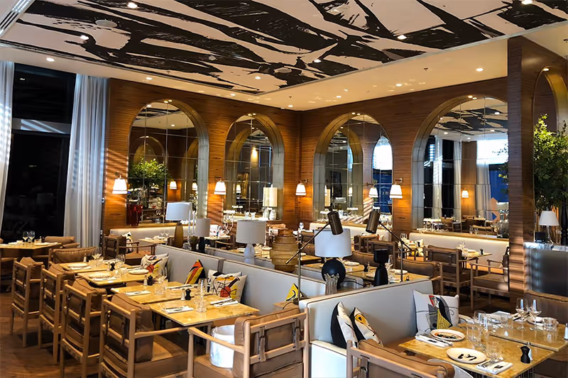 The attractive terrace and cozy interior aren't the only features that distinguish this restaurant from its Boxpark neighbors. The attentive service and flattering lighting also contribute to its appeal. The enticing menu and the kitchen's expertise make it an excellent choice for dinner. A perfect example of its French cuisine with Japanese influences is the delectable charcoal-smoked lamb chops with teriyaki sauce.